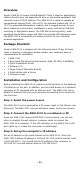 Specifications WLAN Interface Standards: IEEE 802.11a/b/g for Wireless LAN IEEE 802.11i for Wireless Security IEEE 802.3 for 10BaseT IEEE 802.3u for 100BaseTX IEEE 802.3af for Power-over-Ethernet IEEE 802.1D for Spanning Tree Protocol IEEE 802.1w for Rapid STP Spread Spectrum and Modulation (typical): • DSSS with DBPSK, DQPSK, CCK • OFDM with BPSK, QPSK, 16QAM, 64QAM • 802.11b: CCK @ 11/5.5 Mbps, DQPSK @ 2 Mbps, DBPSK @ 11 Mbps • 802.