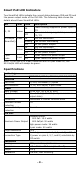 Smart PoE LED Indicators Two SmartPoE LEDs indicate the current status between PSE and PD and the power output mode of the INJ-24A. The following table shows the details about these SmartPoE LEDs. LED Color State Description Power is being supplied to power input P1 ON /P2 P1, P2 Amber Power is not being supplied to power input OFF P1 / P2 802.3af/at Green ON 802.3at connection (SmartPoE) Blinking PoE current overloading OFF No PoE power output ON 802.