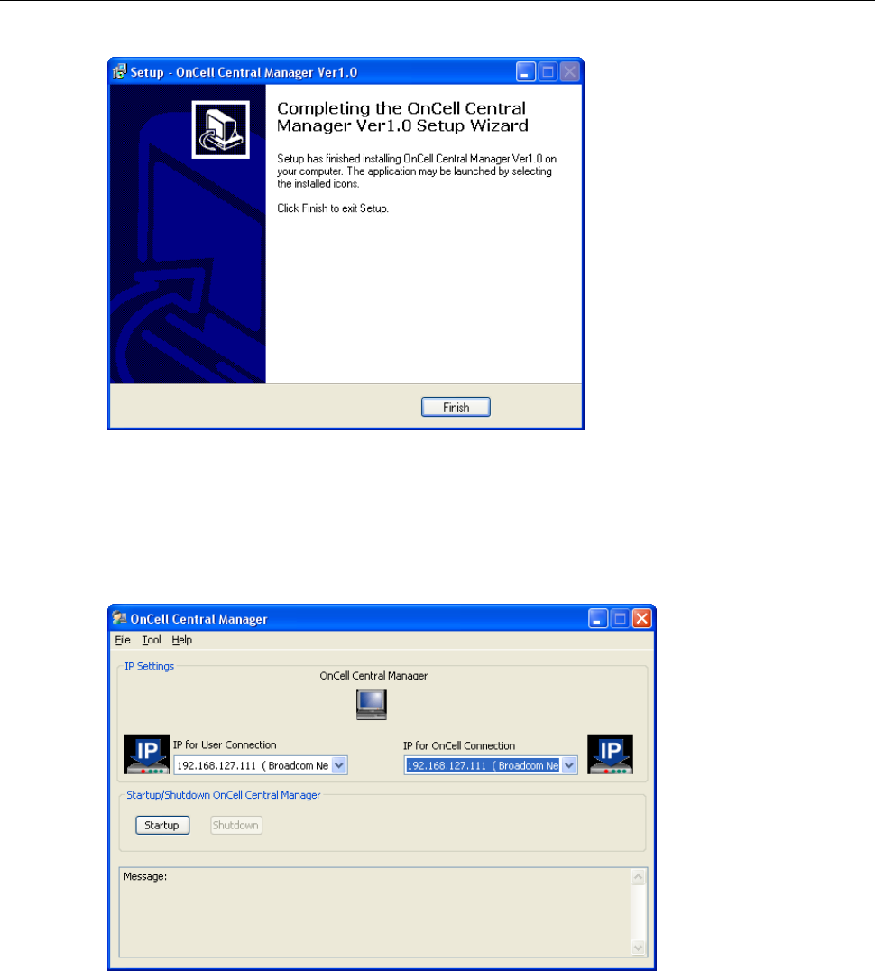 8. Click Finish to complete the installation of the OnCell Central Manager.