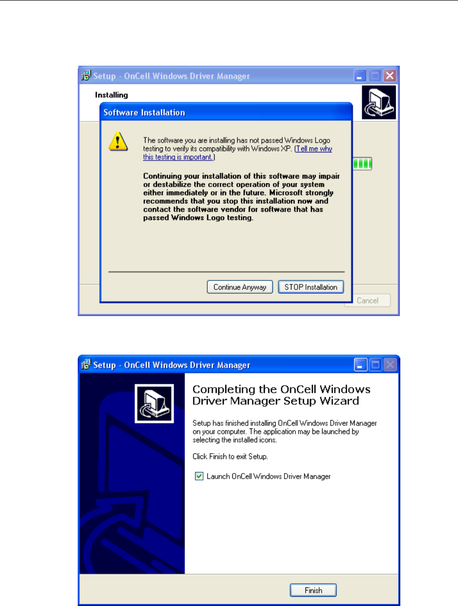 6. Click Finish to complete the installation of the OnCell Windows Driver Manager.