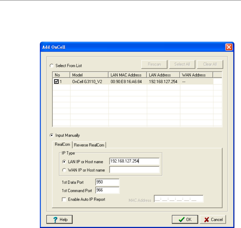 Alternatively, for Real COM mode, you can select Input Manually and then manually enter the