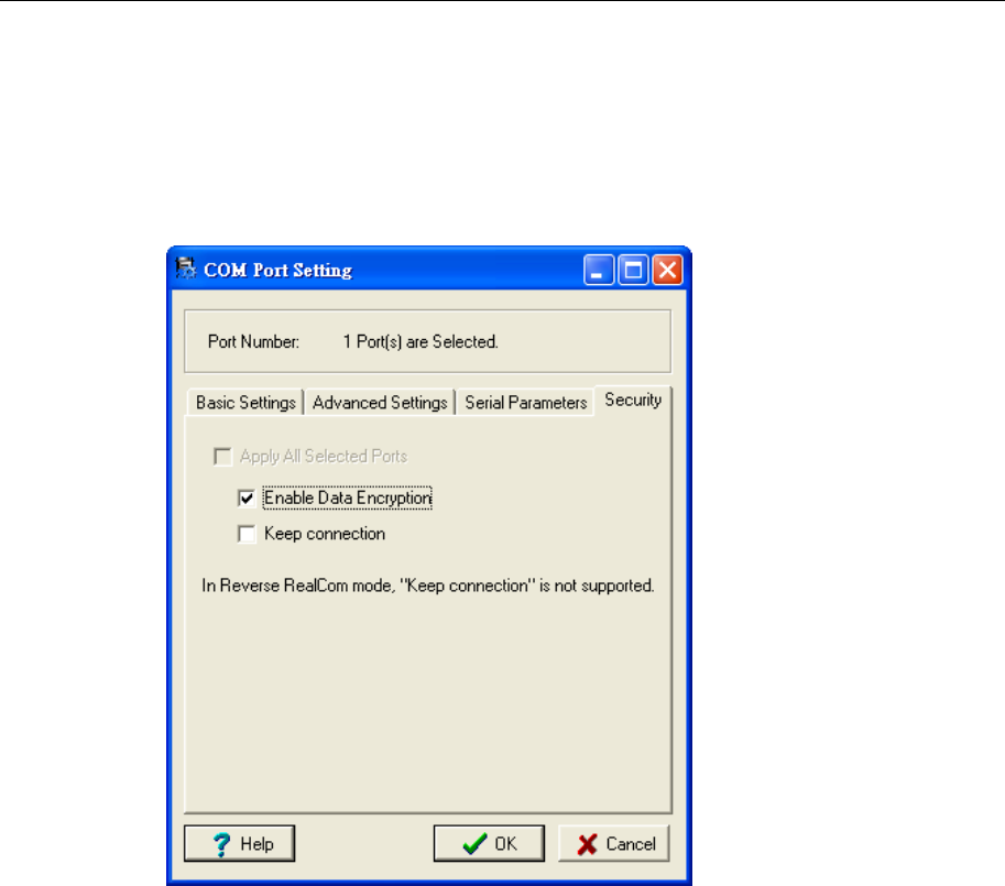 option to enable data to be encrypted when transmitted over the COM ports. After selecting the