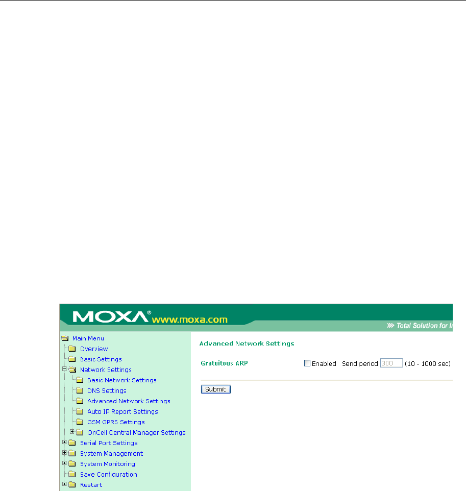 Gratuitous ARP: In some applications, you may need the OnCell G3111/G3151/G3211/G3251 to