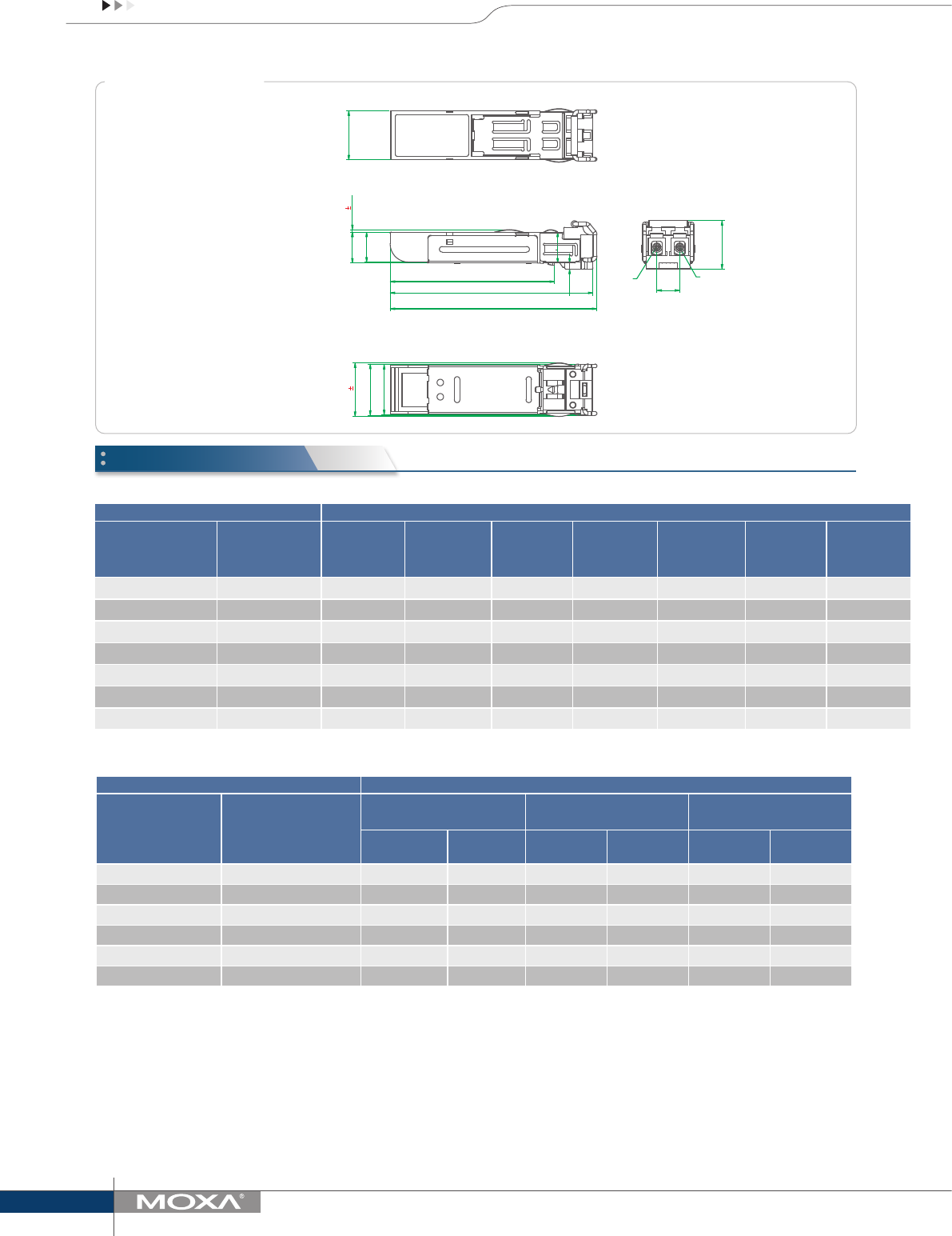 Note: SFP-1GSXLC-T: -20 to 75˚C operating temperature