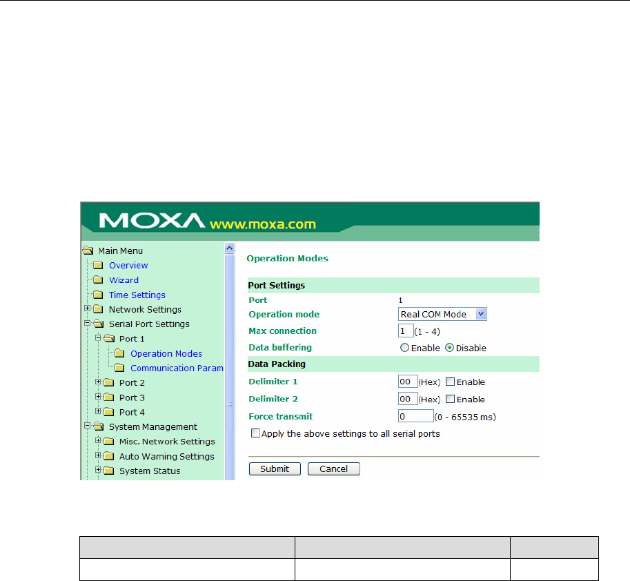 Settings # Port 1/2/3/4 # Operation Modes is selected are dependent on which of the four