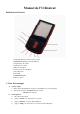 Manuel de l’Utilisateur Définitions des Touches 1. SUIVANT: Musique suivante/ Avance rapide 2. PRÉCÉDENT: Musique précédente/Retour 3. Augmentation du volume 4. Diminution du volume 5. Menu: bouton Menu 6. Lecture: bouton Lecture/Pause 7. Carte Micro SD 8. Prise USB 9. ARRET/MARCHE 10. Prise écouteurs 1. Jouer de la musique a) Actions simples 1. Entrez dans le Mode Musique et appuyez sur Lecture pour jouer la musique. 2. Sélectionner une Piste: Précédent: Piste Précédente; Suivant: Piste Suivante.