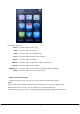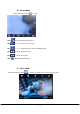 Click Click Click to show all Dir。 : to add marked to play /pause Click to adjust the Volume Click to return to main menu. Click to select the previous file, click to select the next file. Click to adjust the playing point. Fast forward or Fast backward: Slide D) Camera Mode Under main interface,Click Click Click to enter. to return to main menu. to return to the previous interface Click “capture”To take picture.