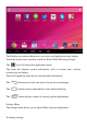 The Desktop cn contains shortcuts to your most-used applications and widgets Touch the screen icon to quickly search the World Wide Web using Google. The icon will launch the Application menu. The status bar displays system information, such as current time, wireless connectivity and battery. Touch to Expand the status bar for more detailed information. The button moves back one step to the previous menu/page. The buttons returns immediately to the Android desktop.