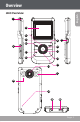 Overview English Left View 1. Strap hole 2. SD Card slot Front View 3. LCD display 4. LED indicator 5. UP/Zoom in button 6. MODE button 7. LEFT button 8. Press the button to change the recording quality in Vidoe or Photo mode. < DISP > MENU button