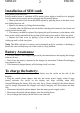 MPMAN 2 PH120S Installation of SIM card: This phone is dual sim card. Ensure mobile phone is switched off.The mains power adaptor should not be plugged into the mains power supply and not plugged into the mobile phone. • Remove the back cover from the mobile phone by pushing down on the back cover and sliding the cover off. • Remove the battery by lifting the bottom edge. • Carefully slide the SIM card into the holder with the gold connectors face down and angled corner bottom right.