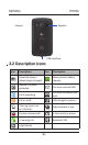 MPMAN PH350 Speaker Campra USB interface 2.2 Description Icons Icon Description Icon Description Shows the phone’s network signal strengt h. Show s phone’s battery capacity. Speaker has been activated. You have unread SMS. Call Forwardin g You have unheard voice mail. Call on hold USB storage Turned on. The ring type is set on Vibration. Edge network in use. You have missed calls. A clock alarm is active.