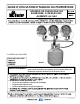 CALENTADOR INFRARROJO DE GAS PARA MONTAJE SOBRE EL TANQUE LEA LAS INSTRUCCIONES DETENIDAMENTE: CYLINDER NOT INCLUDED IDIOMAS INCLUIDO: MH45T no se sigue la información de este manual con exactitud, puede producirse un ADVERTENCIA: Si incendio o una explosión y provocar daños a la propiedad, lesiones personales o la muerte. — QUÉ HACER SI DETECTA OLOR A GAS • No intente encender el artefacto. • Extinga cualquier llama expuesta. • Cierre el paso de gas al artefacto.