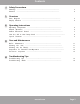 Contents ! Safety Precautions 1 Overview 2 Operating Instructions 3 Care and Maintenance 4 Troubleshooting Tips Warnings ................................................................................................................................. Cautions .................................................................................................................................. Parts Diagram ................................................................................................