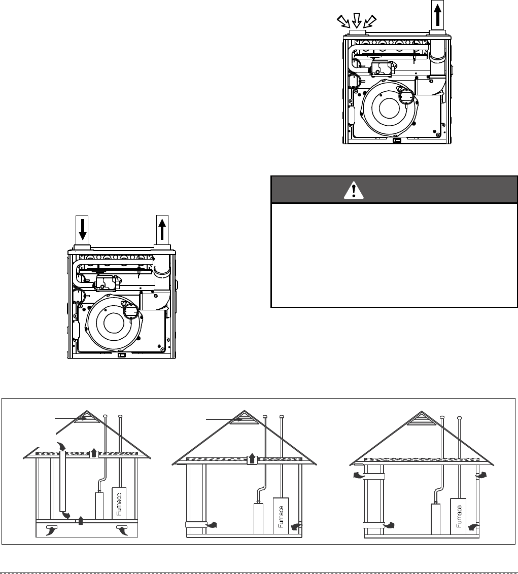 wall (horizontal or side vent) or through the roof (vertical vent). Care