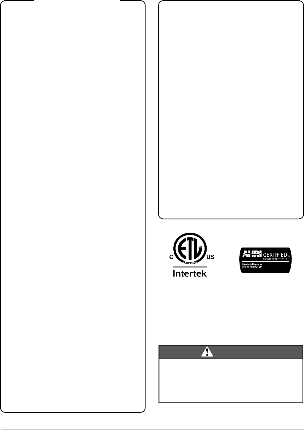 Z21.47·CSA-2.3 Gas Fired Central Furnaces.