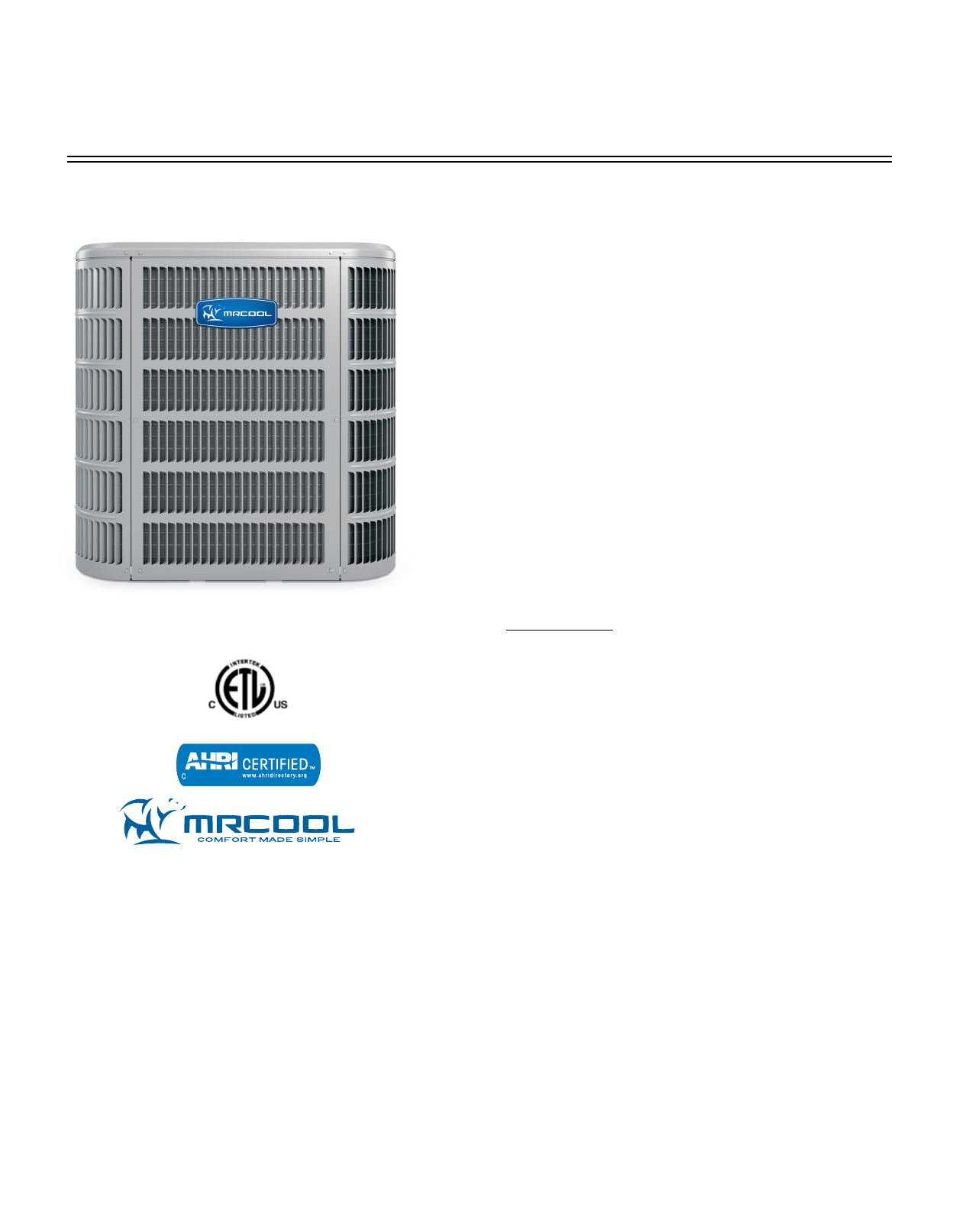 See full warranty at www.mrcool.com for terms, conditions and