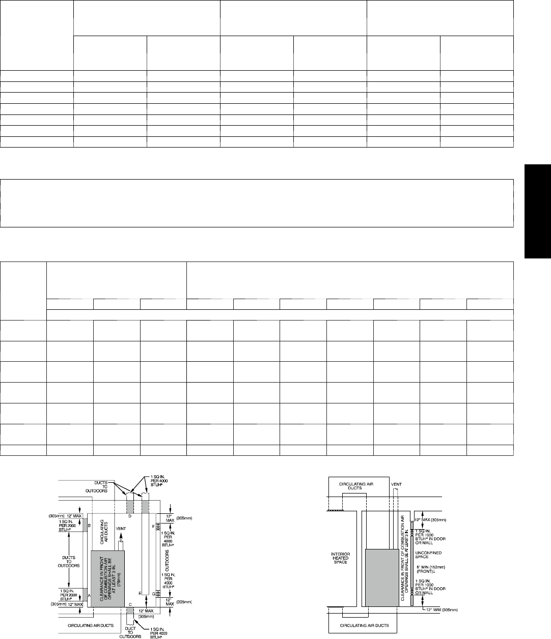 Table 3 – Minimum Free Area Required for Each Combustion Air Opening or Duct to Outdoors