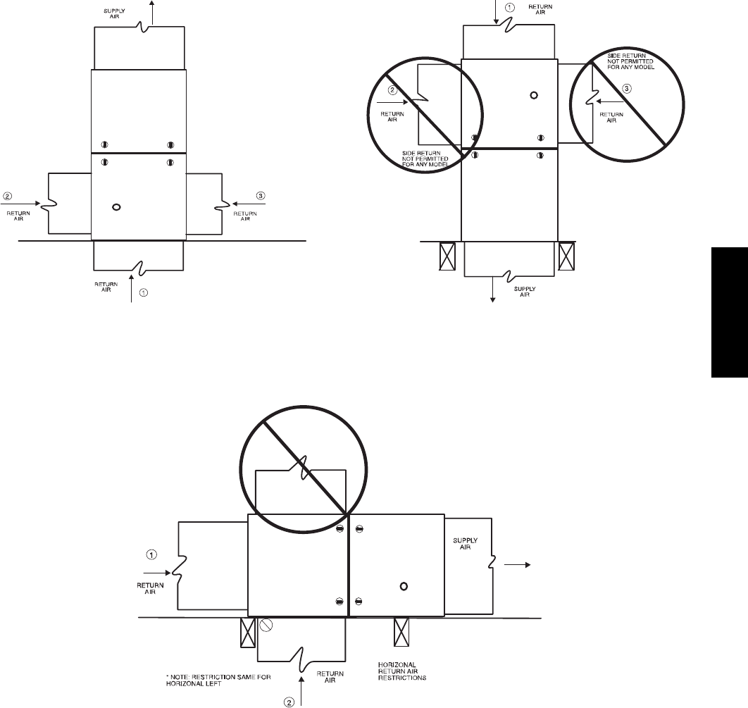 Fig. 28 -- Horizontal Return Air Configurations and Restrictions