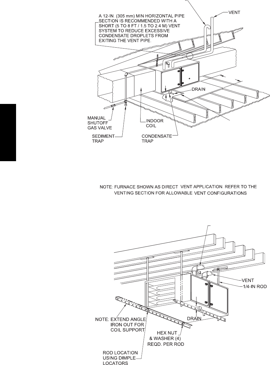 NOTE: Local codes may require a drain pan and condensate trap when a condensing furnace is installed over a finished ceiling.