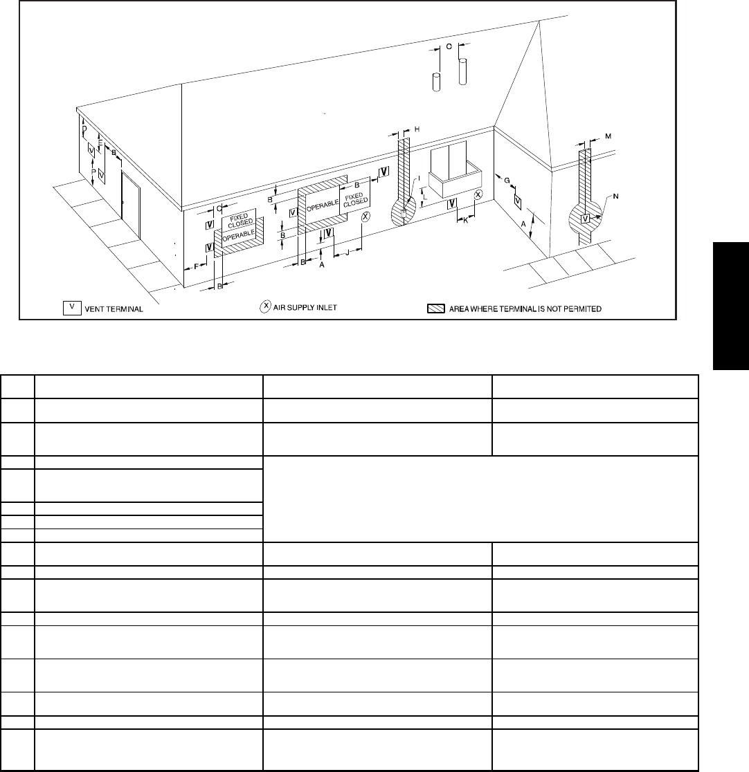 K Clearance to a mechanical air supply inlet 6 ft. (1.8 M) 3ft. (.9 M) above if within ‘0 ft. (3 M) horizontally