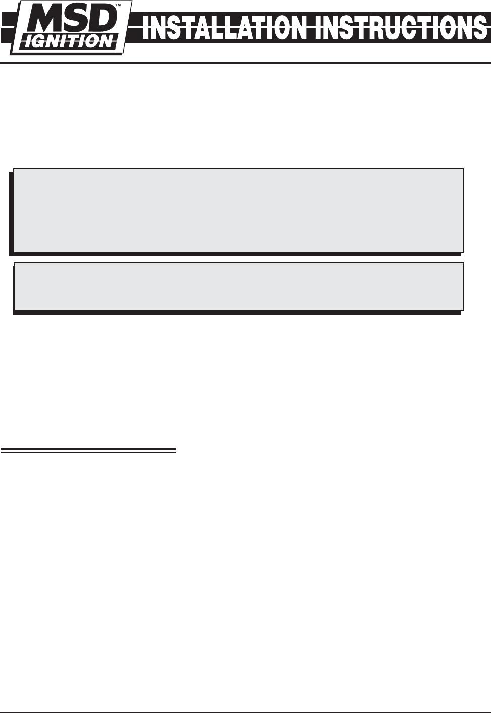 WARNING: Before installing the MSD Distributor, disconnect the battery cables. When