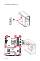 JCORSAIR1: CORSAIR Connector The JCORSAIR1 connector allows you to connect the CORSAIR Individually Addressable Lighting PRO RGB LED strips 5V or CORSAIR RGB fans with the CORSAIR fan hub. Once all items are connected properly, you can control the CORSAIR RGB LED strips and fans with MSI's software. 1 JCORSAIR1 1 +5V 3 Ground 2 Data CORSAIR RGB Fan Connection CORSAIR RGB fan 3 2 1 CORSAIR RGB LED Extension Cable CORSAIR fan hub Connect the SATA Power connector to power supply.