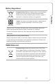 Battery Regulations 廢電池請回收 Taiwan: For better environmental protection, waste batteries should be collected separately for recycling or special disposal. California, USA: The button cell battery may contain perchlorate material and requires special handling when recycled or disposed of in California. For further information please visit: http://www.dtsc.ca.gov/hazardouswaste/ perchlorate/ Safety Guideline for Using Lithium Battery Danger of explosion if battery is incorrectly replaced.
