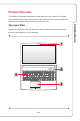 • Webcam LED indicator, next to the webcam, glows when webcam function is