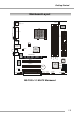 Getting Started Mainboard Layout CFAN1 Top: Mouse Bottom: Keyboard FDD1 SMSC LPC47M997-NR ATX1 Parallel Port T: 1394 Port B: USB Ports JPW1 BIOS DIMM3 DIMM4 DIMM1 PCI 1 DIMM2 PCIE16X1 VIA VT6307 PCI 2 ALC658 Codec IDE 1 ATI RX480 SFAN1 SPDIF-Out T: Line-In M: Line-Out B: Mic Realtek 8100C IDE 2 T: LAN Jack B: USB Ports PCI 3 ATI SB400 BATT + SATA1 SATA2 SATA3 JCOMS1 SATA4 JCD1 J1394_1 JUSB1 JUSB2 JFP1 JAUD1 JPWD1 JAUX1 MS-7093 v1.