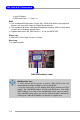 Hardware Setup Installing DDR Modules 1. 2. 3. The DDR DIMM has only one notch on the center of module. The module will only fit in the right orientation. Insert the DIMM memory module vertically into the DIMM slot. Then push it in until the golden finger on the memory module is deeply inserted in the socket. The plastic clip at each side of the DIMM slot will automatically close.