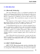User’s Guide 1. Introduction 1.1 Bluetooth Technology The term “Bluetooth” refers to a worldwide standard for the wireless exchange of data between two devices. In order to exchange data, two Bluetooth devices must establish a connection. Before a connection is established, one device must request a connection with another. The second device accepts (or rejects) the connection. The originator of the request is known as the client. The device that accepts (or rejects) the request is known as the server.