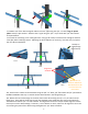 111 A 112 111 B 111: Attach one of the 3x5 rectangular tubes to the 4.5” pipe using the 3/4” x 5” bolts, large 5” square plates and 3/4” split washers. Attach to the 2” pipe using the 1/2” x 4 1/2” bolts with 1/2” flat washers and split washers. 112: Install the remaining 5"x3" rectangular tube. Snug up all 4 bolts, but leave loose enough to allow for some play when installing I-beams. Adjusting the Screw Adjuster as necessary, level the array in preparation for I-Beam installation.