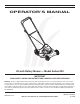 Safety • Assembly • Operation • Tips & Techniques • Maintenance • Troubleshooting • Parts Lists • Warranty OPERATOR’S MANUAL 20-inch Rotary Mower — Model Series 020 IMPORTANT READ SAFETY RULES AND INSTRUCTIONS CAREFULLY BEFORE OPERATION Warning: This unit is equipped with an internal combustion engine and should not be used on or near any unimproved forest-covered, brushcovered or grass-covered land unless the engine’s exhaust system is equipped with a spark arrester meeting applicable local or state laws