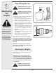 2 Starting the Engine WARNING: Always keep hands and feet clear of moving parts. Do not use a pressurized starting fluid. Vapors are flammable. Operating the Engine NOTE: Allow the engine to warm up for a few minutes after starting. The engine will not develop full power until it reaches operating temperatures. Engines with Electric Starters WARNING: The electric starter is equipped with a grounded three-wire power cord and plug, and is designed to operate on 120 volt AC household current.