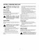SECTION4: OPERATING YOURTILLER • ,_ all instructions warningsandon the WARNING: Read, and understand, follow machine and in this manual before operating. • BeforeStarting • • GasAndOil Fill-Up Service the engine with gasoline and oil as instructed in the separate engine manual packed with your tiller. Read instructions carefully.
