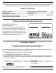 6 Problem Engine fails to start Trouble Shooting Engine runs erratic For repairs beyond the minor adjustments listed here, contact an authorized service dealer. Engine overheats Occasional skips (hesitates) at high speed Excessive Vibration Unit does not discharge Rate of discharge slows considerably or composition of discharged material changes Cause Remedy 1. Throttle lever not in correct starting position (if equipped). 1. Move throttle lever to FAST or START position. 2.