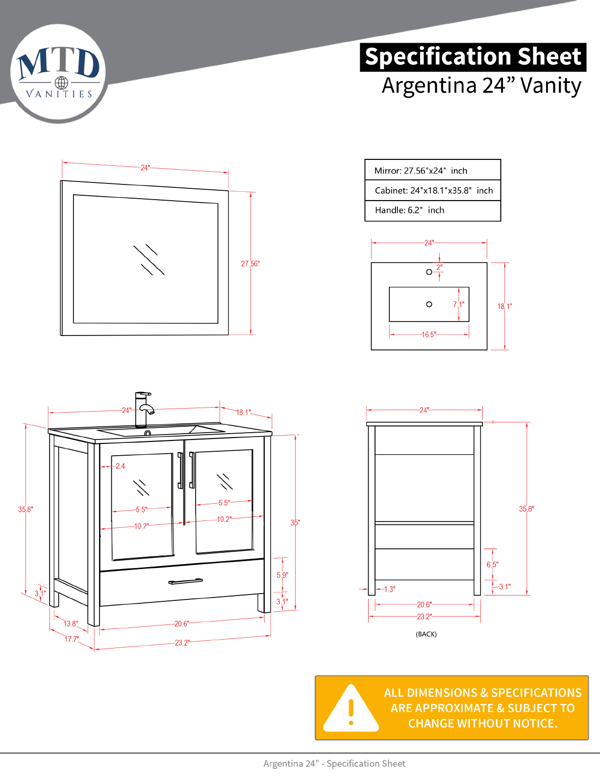 Argentina Collection MTD-1024G 24" Single Sink Bathroom Vanity Set in Gray