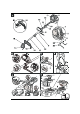 Deutsch Die Abnutzung der Verzahnung (5) an Spulengehäuse (1) und am Spulendeckel (4) prüfen. Falls notwendig, beschädigte Teile auswechseln. Bild 20 Eine neue Spule in den Spulendeckel stecken und die Fadenenden durch die jeweils gegenüberliegenden Schlitze im Spulendeckel führen. Bild 21 Vormontierte Einheit (3) aus innerer Spule und Spulendeckel in das Spulengehäuse (2) drücken, bis die Haltelaschen (1) einrasten.