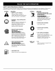 SAFETY AND INTERNATIONAL SYMBOLS This operator's manual describes safety and international symbols and pictographs that may appear on this product. Read the operator's manual for complete safety, assembly, operating and maintenance and repair information. SYMBOL MEANING SYMBOL • SAFETY ALERT SYMBOL Indicates danger, warning, or caution. May be used in conjunction with other symbols or pictographs.