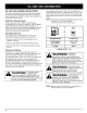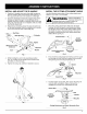 • Alwaysstoptheengineandallowittocoolbeforefilling thefueltank.Neverremove thecapofthefueltank,or addfuel,whentheengineishot.Neveroperatetheunit withoutthefuelcapsecurelyinplace.Loosenthefuel tankcapslowlyto relieveanypressure inthetank. • Mixandaddfuelina clean,well-ventilated outdoorarea wheretherearenosparksorflames.Slowlyremove the fuelcaponlyafterstoppingengine.Donotsmokewhile fuelingor mixingfuel.Wipeupanyspilledfuelfromthe unitimmediately. Alwayswipeunitdrybeforeusing. • Movetheunitatleast30feet(9.