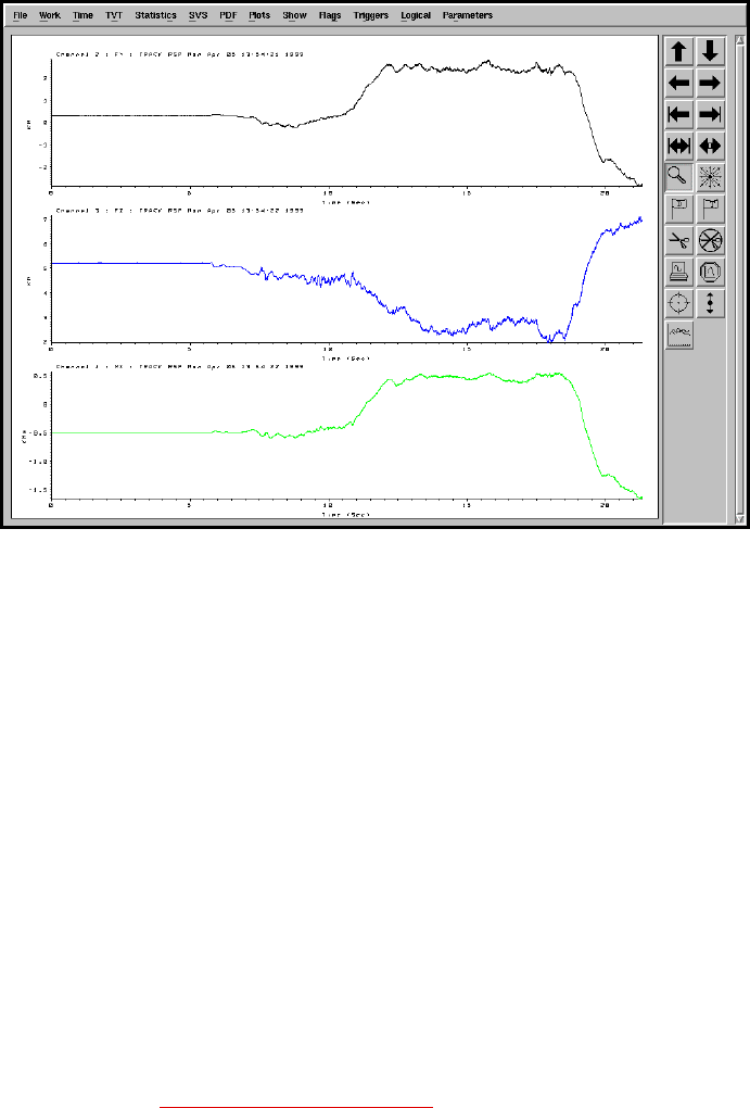 Channel 4 Mx Data The following figure shows the relationship between Mx, Fz, and Fy, during a