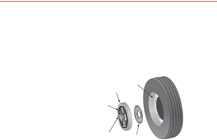 Transducer The transducer attaches directly to a modified wheel rim. On the test track, it