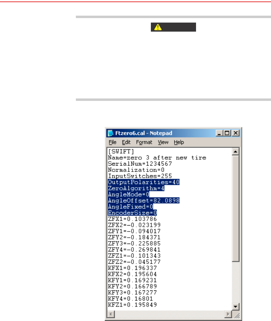 Do not change any other items in the calibration file.