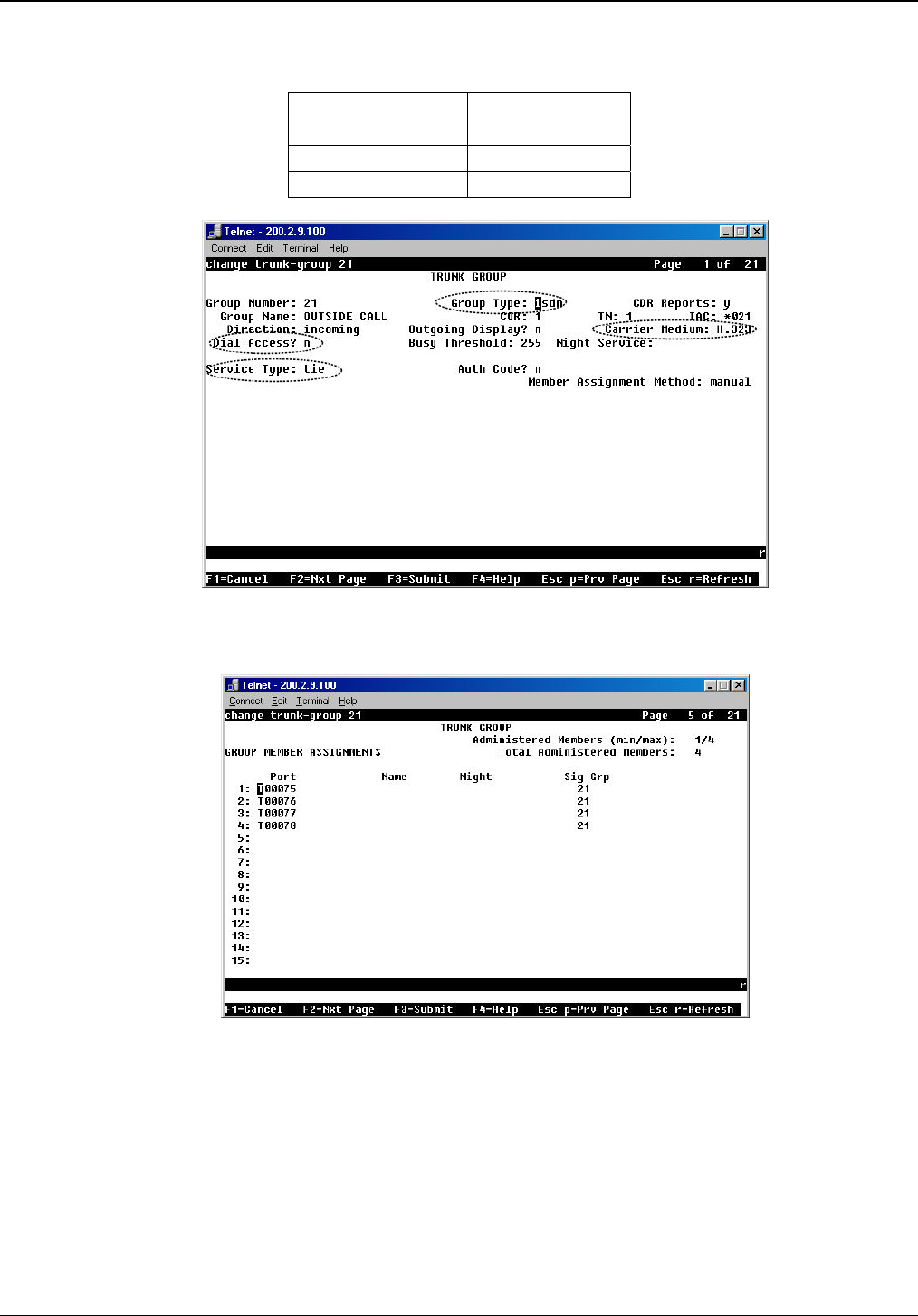 group members in the Communication Manager Trunk Group form (“Change Trunk-Group”