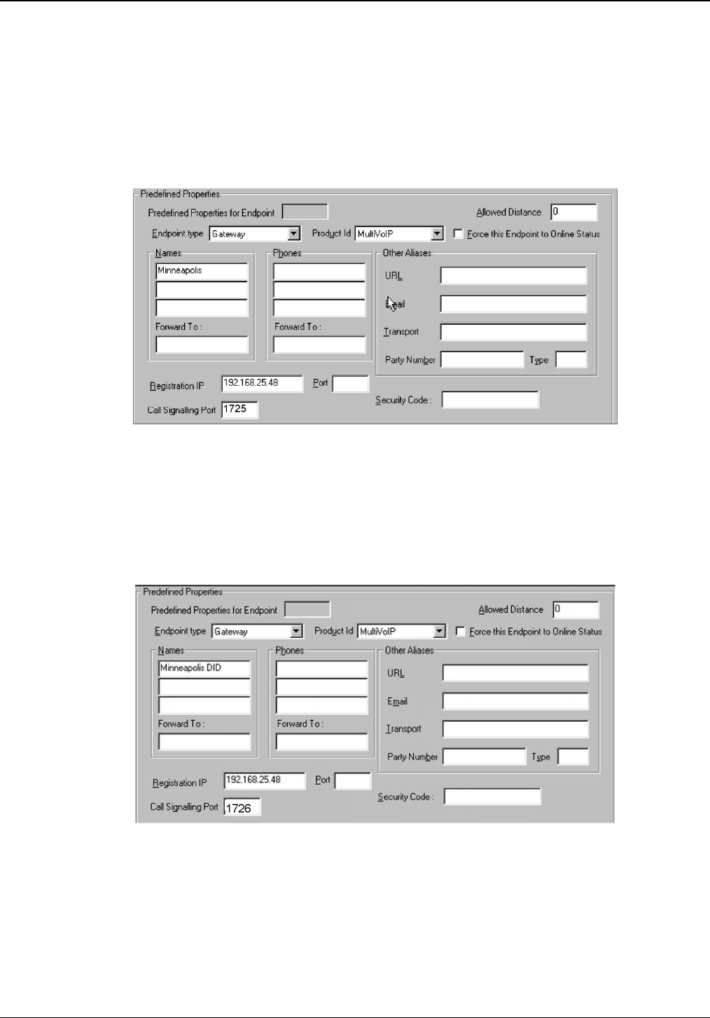 given MultiVOIP. For example, if the MultiVOIP has four DID ports, only one gatekeeper entry
