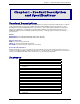 Table of Contents Contents Chapter 1 – Product Description and Specifications................................................................................................4 Product Description.................................................................................................................................................4 Features..................................................................................................................................................................