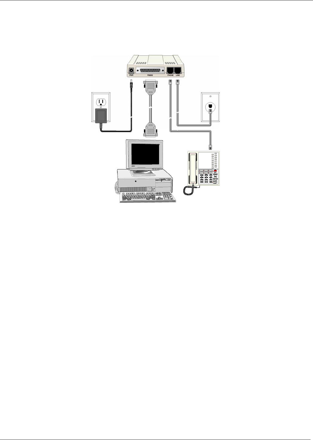 Turn off your computer. Placing the modem in a convenient location, connect it to your computer’s serial port, to the phone