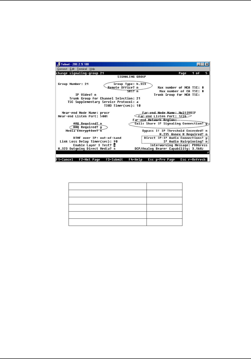 Note that several other fields in the Communication Manager “Signaling Group” form (dialog box)