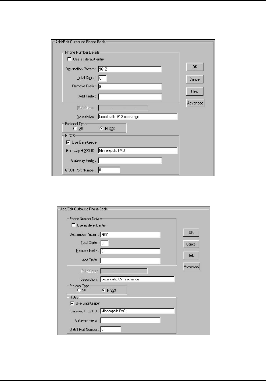 screen and click the Add button to add another Outbound Phone Book entry for the 612 area code.