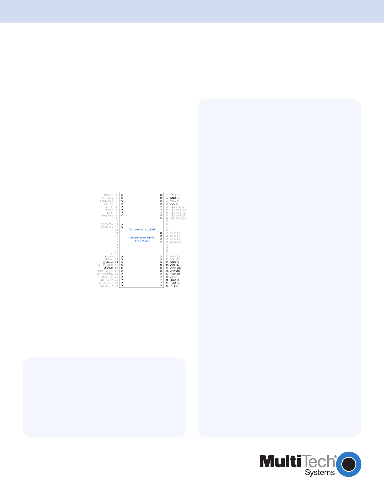 Universal Socket Connectivity.Multi-Tech’suniversalsocket